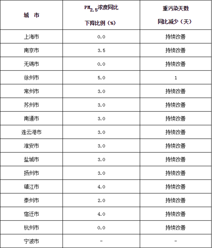主要目標(biāo):穩(wěn)中求進,推進環(huán)境空氣質(zhì)量持續(xù)改善,長三角地區(qū)全面完成2019年環(huán)境空氣質(zhì)量改善目標(biāo),協(xié)同控制溫室氣體排放。秋冬季期間(2019年10月1日-2020年3月31日),PM2.5平均濃度同比下降2%,重度及以上污染天數(shù)同比減少2%(詳見附件1)。
