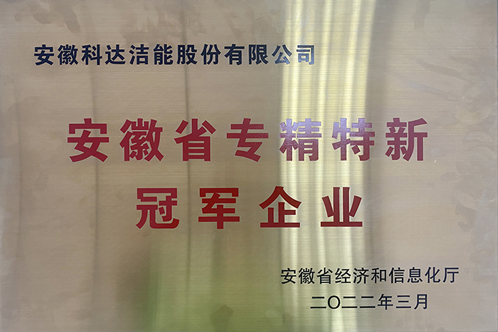 3月份,安徽省經(jīng)濟(jì)和信息化廳公布了2022年安徽省專精特新冠軍企業(yè)名單,安徽科達(dá)潔能股份有限公司位列其中。
