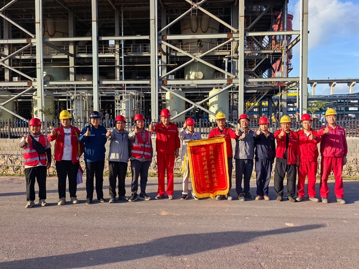 該項目自2025年7月23日立柱,僅用時157天即建成投產,創造了科達潔能海外項目建設的最短工期記錄。客戶送上的錦旗以及“高效施工顯科達速度,及時交付展潔能風采”的贊譽,是對科達團隊專業能力和拼搏精神的充分肯定。